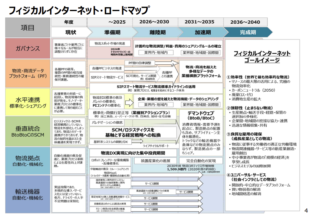今回のコンソーシアムは、まさにこれらPIの要件を満たす取り組みであり、今後は特積み貨物のみならず、百貨店、スーパー、建材といったさまざまな業種へ波及することが期待されています。政府も2040年に向けて、全貨物の標準化、最適ルーティングが可能なシステムの整備、すべてのトラックとドライバーの動態管理(リアルタイム同期)の導入を進める方針です。これらの要求水準に対応できない企業は、市場から淘汰される可能性すら指摘されています。
